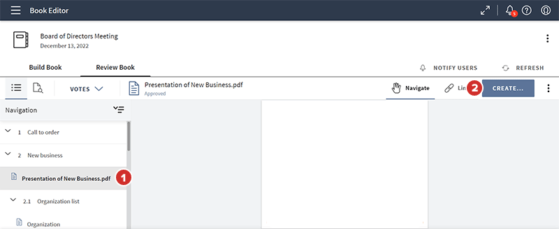 Abra el Editor de Libros y seleccione un documento para convertirlo en un documento de votación. También puede agregar un nuevo documento al libro.
