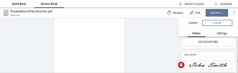 Puede agregar indicadores de posición de firma para votantes sin una firma digital registrada, pero estos deberán agregar una o hacer que se agregue una para poder votar de manera afirmativa.