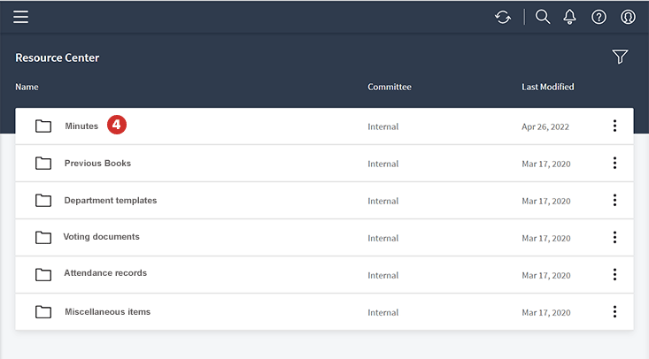 Aparecerá una lista de carpetas que contienen materiales de referencia. Para exportar una carpeta, incluyendo las subcarpetas y/o documentos que esta contenga, seleccione el menú del extremo derecho de la fila de la carpeta.