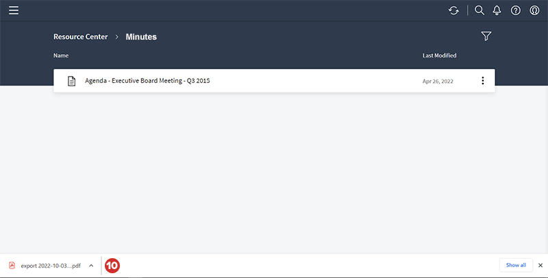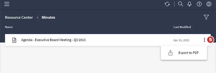 Puede exportar carpetas y documentos desde el centro de recursos en formato Adobe PDF, lo que permite imprimirlos.