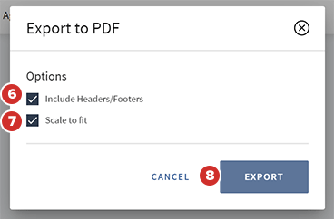 Si no se muestra la opción "Exportar a PDF", significa que no se ha habilitado la exportación para usted o para su sitio. Comuníquese con su ejecutivo de cuentas para obtener ayuda.