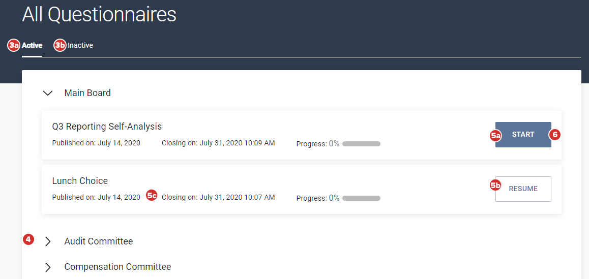 Visualice y administre sus respuestas a los Cuestionarios o las Encuestas que publica su organización. El progreso se guarda en tiempo real, de modo que podrá regresar al Cuestionario para enviarlo posteriormente.