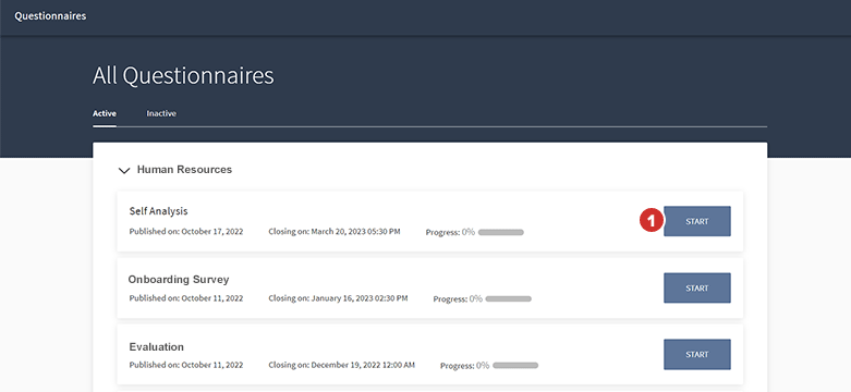 Después de enviar un cuestionario, no se podrán alterar ni eliminar sus respuestas. Los cuestionarios pasarán automáticamente a la sección "Inactivos" después de enviarlos.