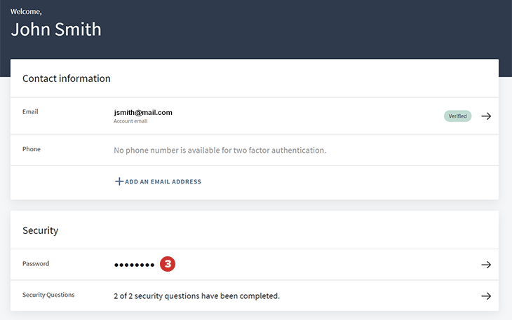 El centro de administración de cuentas se abrirá en una nueva ficha en su navegador web. Para cambiar su contraseña, seleccione el campo Contraseña.