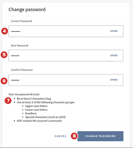 Revise los requisitos de la contraseña para asegurarse de que su contraseña cumpla con los estándares de seguridad.
