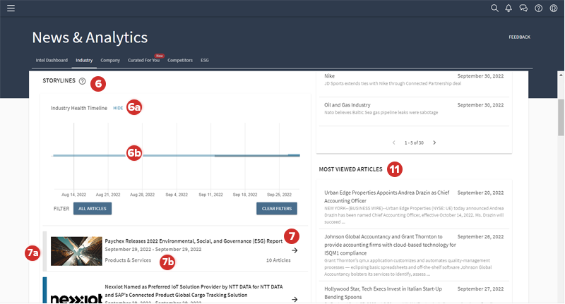Pour afficher le récapitulatif des nouvelles actualités et analyses de votre secteur, sélectionnez l’onglet Secteur.