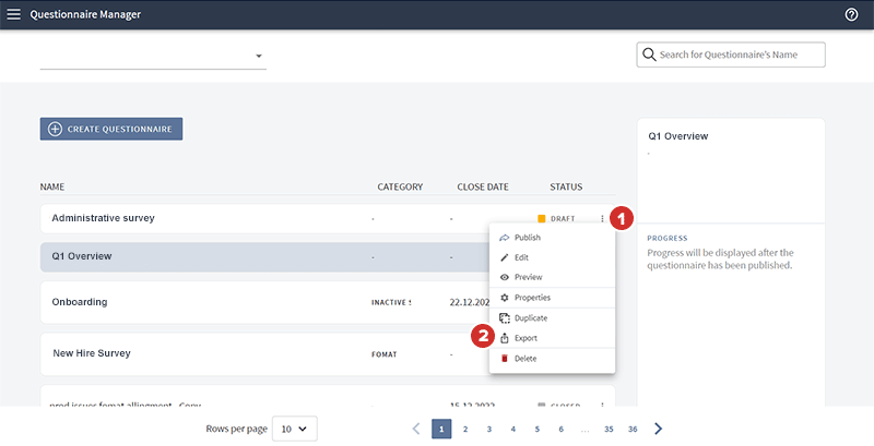 Dans le gestionnaire de questionnaires, sélectionnez l’icône de menu d’un questionnaire.