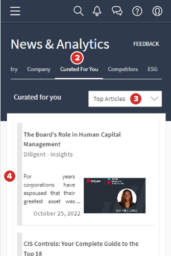 È possibile utilizzare la scheda Contenuti curati per te dell'hub News & Analytics per iOS per visualizzare un feed di articoli rilevanti per la propria azienda e il relativo settore, individuati mediante una tecnologia all'avanguardia.