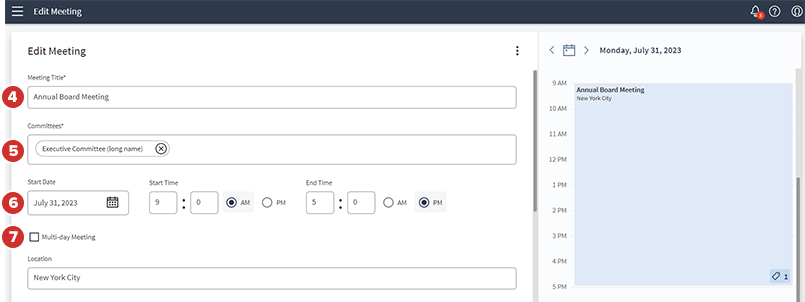 Il calendario visualizza tutte le riunioni e gli eventi del consiglio di amministrazione in un'unica posizione centralizzata.