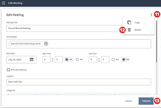 Per copiare una riunione esistente, selezionare l'icona Altre opzioni