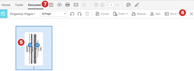 Usare le frecce di rotazione sulla miniatura della pagina o nella barra dei menu per ruotare le pagine necessarie nell'orientamento orizzontale corretto.