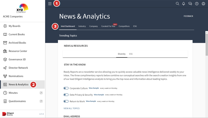 U kunt via de hub Nieuws en analyses voor Web kennis verwerven over de impact die beeldvorming binnen de media op uw branche heeft. De hub Nieuws en analyses voor Web gebruikt bedrijfseigen technologie om nieuwsberichten uit meer dan 80.000 bronnen te verzamelen en te beoordelen en u een overzicht te geven van het laatste nieuws en de nieuwste trends om u te helpen bij een effectieve governance.