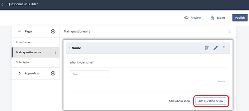 Selecteer Sectiekop om een sectiekop toe te voegen om groepen vragen te ordenen.