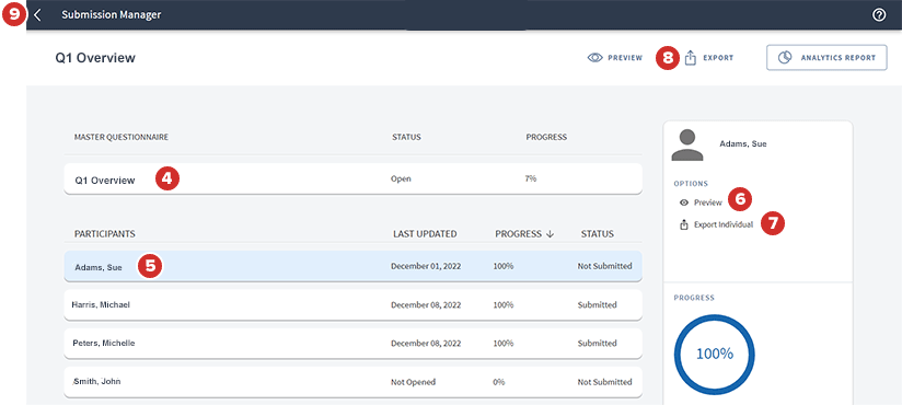 Selecteer een gepubliceerde vragenlijst om de voortgang ervan te bekijken in Vragenlijstbeheer.
