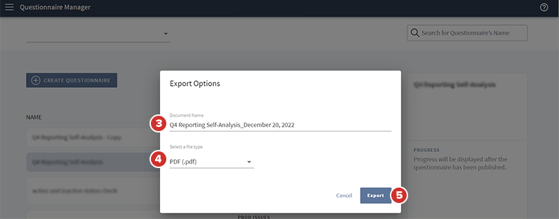 Selecteer Exporteren om een leeg exemplaar van de vragenlijst te maken, met alleen vragen.