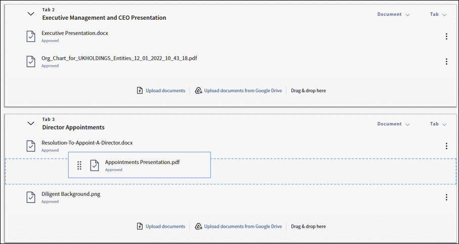 en sleep het document naar de gewenste locatie. Tijdens het verslepen van het document verschijnt er een blauwe omtrek rond het document. -