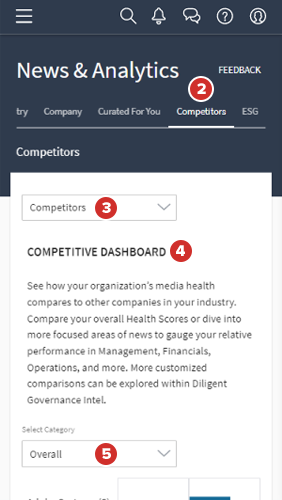 要显示媒体报道类别的结果,请点击选择类别下拉菜单,并选择以下任意一个“竞争力仪表板”部分: