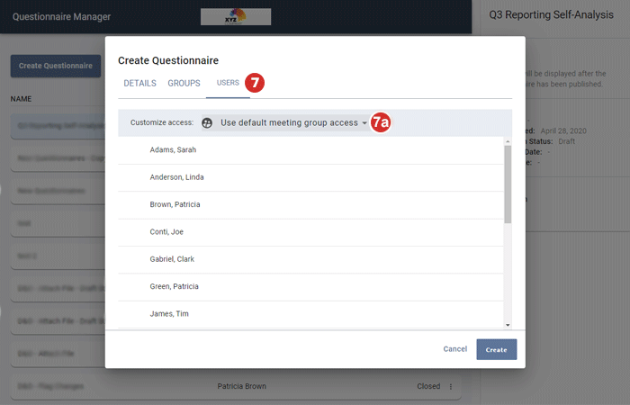 如果需要设置组访问设置的个别例外,请选择用户选项卡。在这里,您可以指定特定个人的调查问卷访问权限。