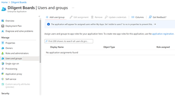 在应用程序名称下输入应用程序的名称,例如 Diligent Boards。