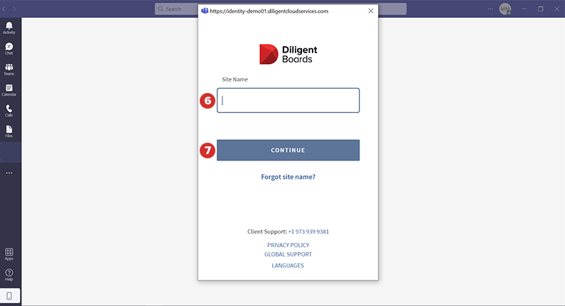 首次登录时,您将在站点名称字段中输入公司的 Boards 站点名称。