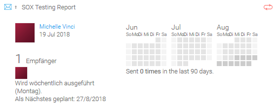 Der Bericht wird dem angegebenen Empfänger nach einen wiederkehrenden Zeitplan bereitgestellt. Die Übertragung eines Berichts ist eine effiziente Methode, um Daten in festgelegten Intervallen für andere Personen freizugeben. Wenn Sie weitere Zielgruppen bedienen möchten, können Sie mehrere Übertragungszeitpläne für einen Bericht festlegen.