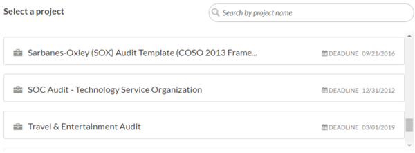 - Tap Projects > under your Diligent One instance.