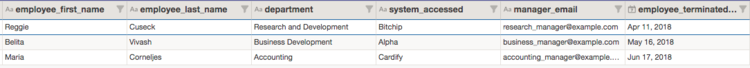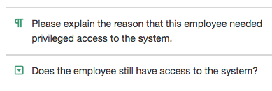 To follow-up on the critical system access records, you want to send a questionnaire to the manager emails you have on file. This way, you can understand the reason for giving the employee privileged access, and whether or not they still have access to the system.