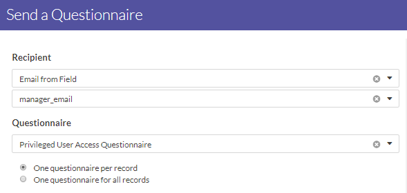 Questionnaires are used to gather information from respondents and contextualize data. Each collection can have one or more questionnaires that you deploy as follow-up mechanisms when remediating records. Responses are captured in the specified table with each question defined as a distinct column.