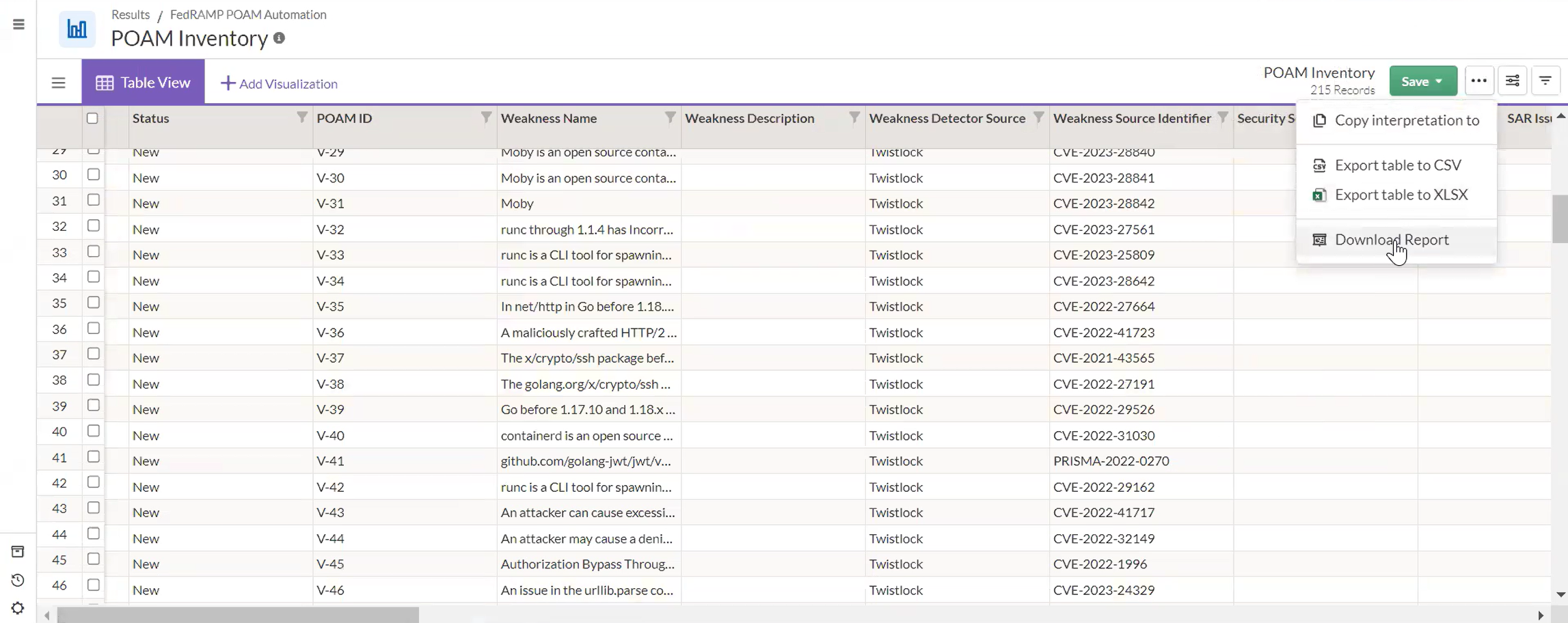 4. Review records in POAM Inventory