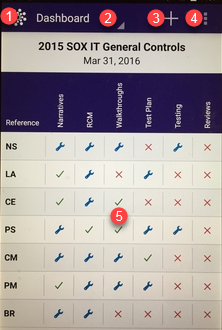 The figure below displays the components on the dashboard. The dashboard opens when a project is selected from the active projects list on the home page.