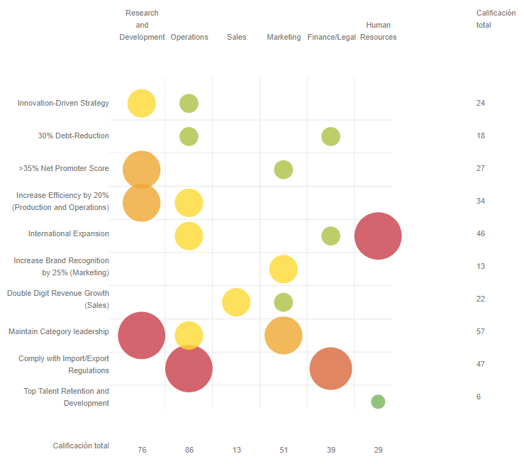 En Estrategia, puede crear mapas de riesgo integrales y configurables para compartir con la gerencia y la junta directiva, que pueden consumirse y sobre los cuales actuar rápidamente. Una vez creados, los mapas de riesgo pueden exportarse y compartirse electrónicamente. También se pueden descargar en cualquier momento otros reportes predeterminados, como el mapa de riesgo de la estrategia, que identifica la gravedad relativa y la agregación de riesgos en diferentes partes de la organización. Los equipos de gestión de riesgos también pueden extraer información detallada del perfil de riesgo mediante la descarga del reporte de Excel disponible.
