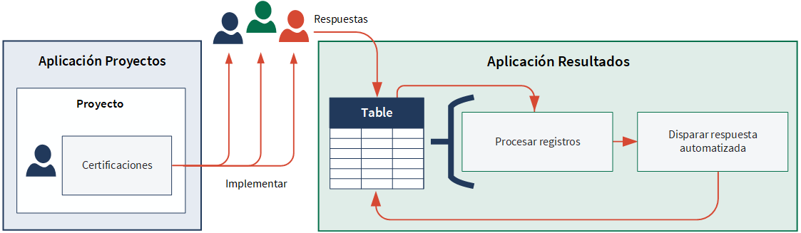 - Los cuestionarios se pueden implementar desde Proyectos. Las respuestas se almacenan en Tablas en Resultados.