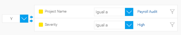 Alternativamente, también puede realizar la misma tarea configurando varios filtros, como por ejemplo: Nombre del proyecto = valor1 O Nombre del proyecto = valor2.