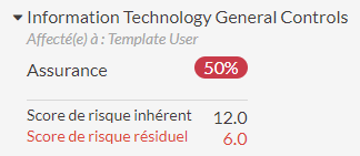Résultat Le score de risque résiduel correspond à 50 % du score de risque résiduel inhérent. Si tous les contrôles avaient fonctionné correctement, le score de risque résiduel aurait été de 0,0 signifiant que les contrôles mis en place auraient permis de réduire le risque de 100%. Cependant, comme seuls deux contrôles sur trois ont abouti (ITC-01 et ITC-02, chacun avec une pondération de 25 %), les contrôles en place diminuent le risque de 50 %.