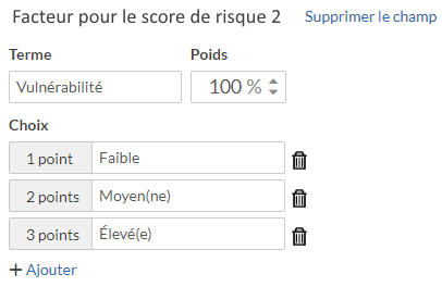 RemarqueCliquez sur +Ajouter trois fois pour marquer les points sous Choix.