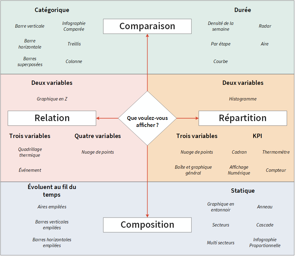 Une fois que vous avez compris votre public et vos données, vous devez sélectionner le graphique qui donne la meilleure représentation possible des données :