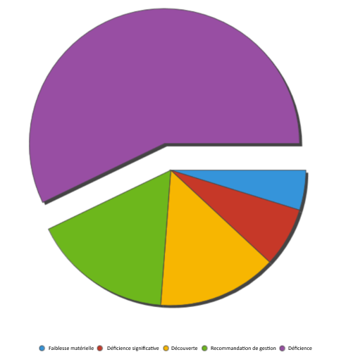 Vous devez fournir une visualisation qui affiche le pourcentage de problèmes en cours par type. Pour visualiser ces données, vous choisissez un graphe camembert puis utilisez une couleur pour associer les différents types de problème à une signification :