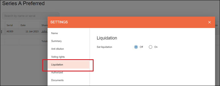 Setting up liquidation preferences