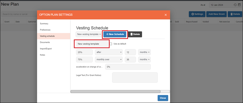 Create a Vesting Schedule template