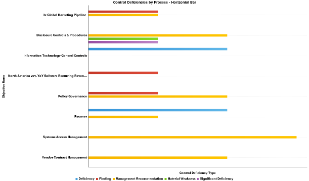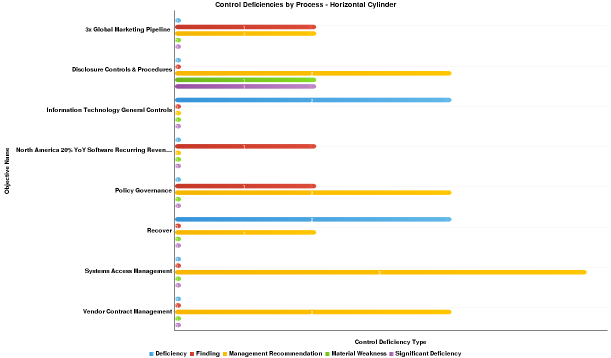 Você precisa visualizar seus pontos pertencentes às deficiências de controle pelo processo. Usando um gráfico de barras horizontais, é possível visualizar cada processo e demonstrar claramente as informações de deficiência do controle associado: