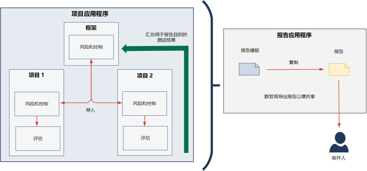- 项目应用程序用于测试控制措施的设计和操作有效性以及捕获问题。如果在框架中创建控制,则可以将更改从项目同步回该框架,以便也在其他项目中使用。