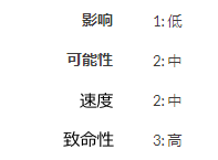 您注意到已为您设置影响、可能性和速度的风险评分因素。您的组织还使用三分制评分机制评估脆弱性风险,因此您需要再设置一个风险评分因素作为风险评分框架的一部分。