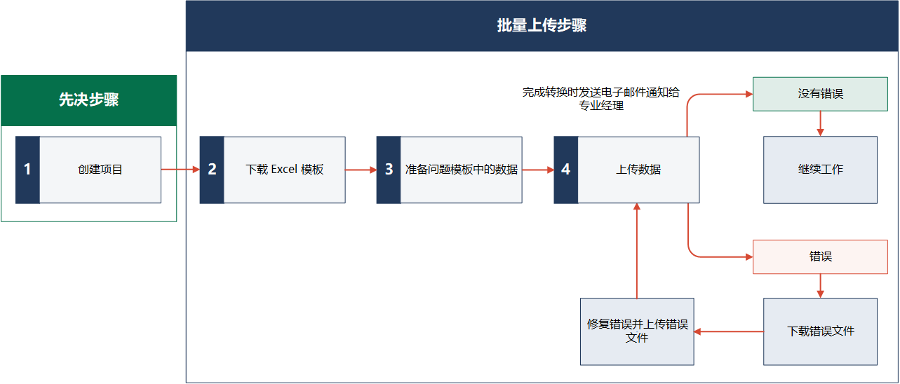 说明问题模板中可以包含的上传到项目应用程序的最大记录数为 1000。只能在问题模板中提供的单个工作表中输入数据。不处理其他工作表。