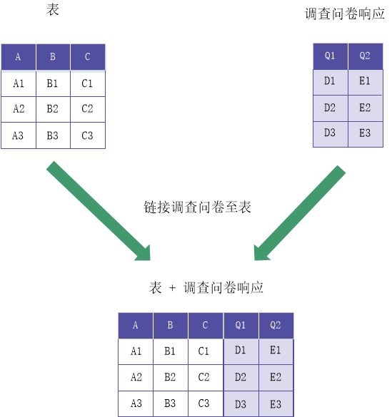 如果要在 Analytics 中编写一个分析数据的脚本,包括调查问卷响应,则在将调查问卷发送给记录之前将表链接起来是很有用的。此选项确保在开始收集响应之前,表结构包含必需的列,以使 Analytics 中的导入语句是正确的。