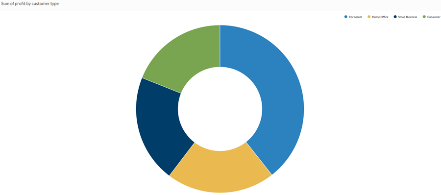 您需要确定客户类型和利润之间是否存在关系。使用饼图,显示每个类别客户的利润总和,以说明哪些客户类型在您的销售额中最为重要: