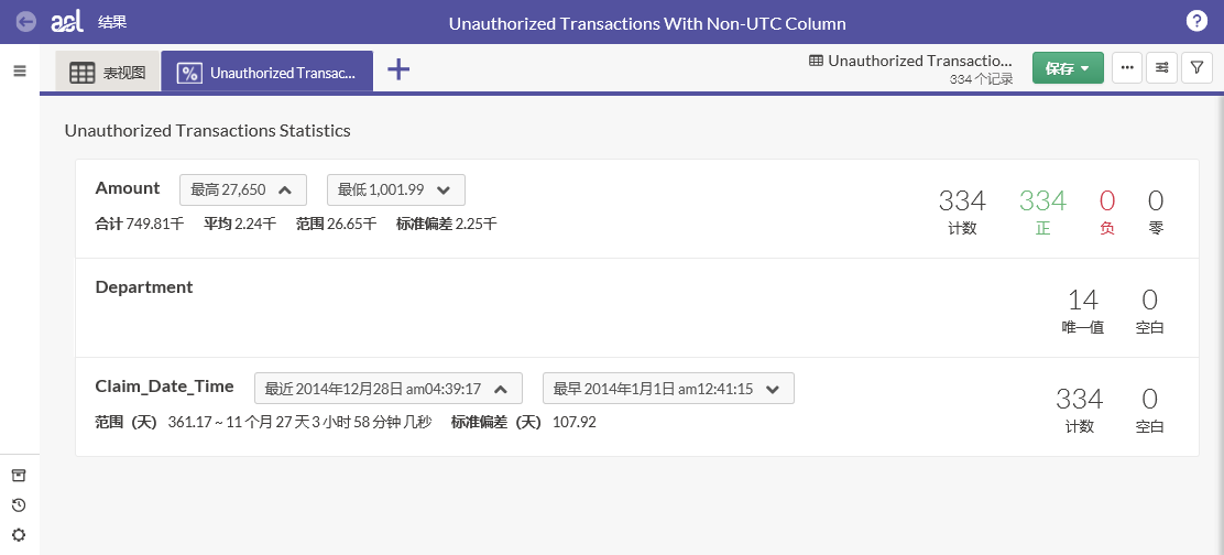 统计信息可提供表格中数据的概览,您可以用来识别趋势或异常情况。