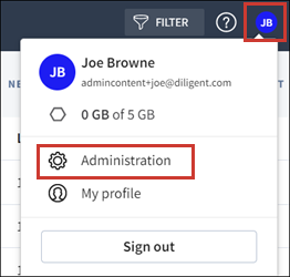 データルームの右上隅にあるプロファイルアイコンを選択します。
