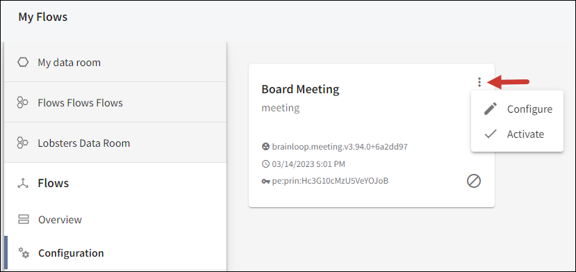 作为流管理员,在配置流之后,必须将其激活才能使用。这需要通过数据室而不是“管理”视图来完成。