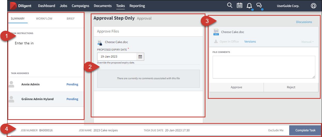 Approve Step | Displays the file name and the proposed date the task will expire. |