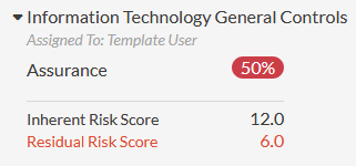 Previously, you created a project from a project template. Now, you need to evaluate the inherent risk score of one of the risks in the Information Technology General Controls objective to determine the raw risk the organization faces if no controls or other mitigating factors have been put in place.